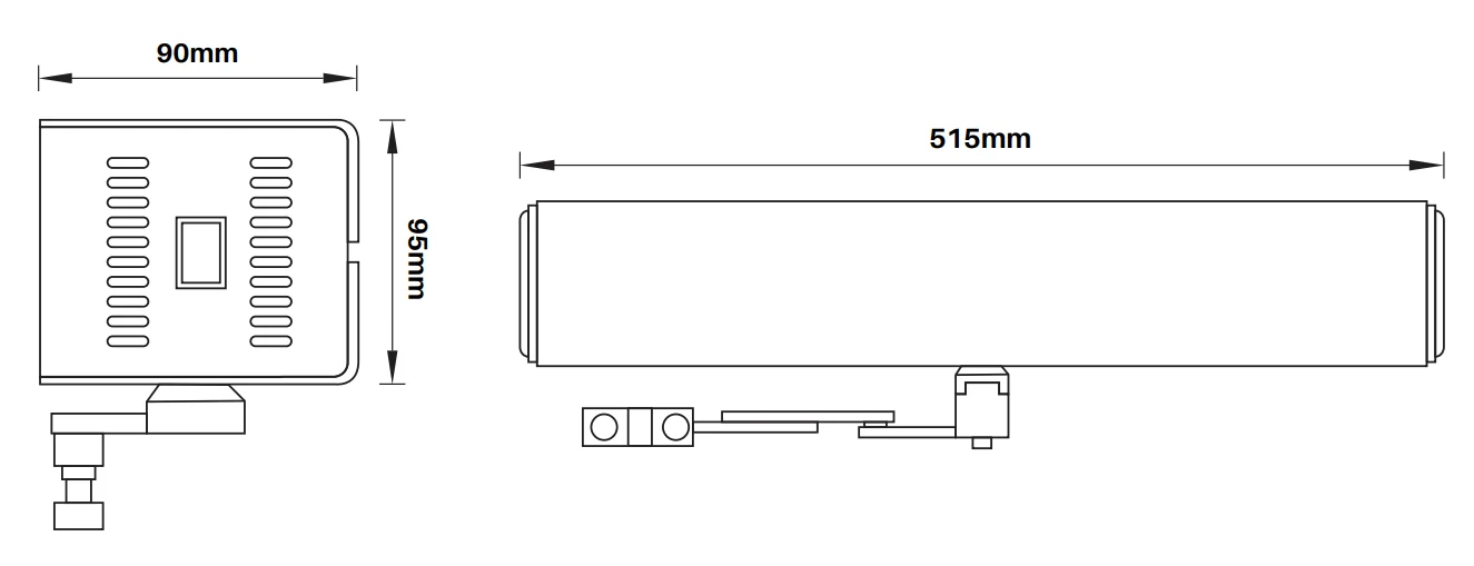 Dimensions: 515 (L) × 90 (W) × 95 (H) mm
